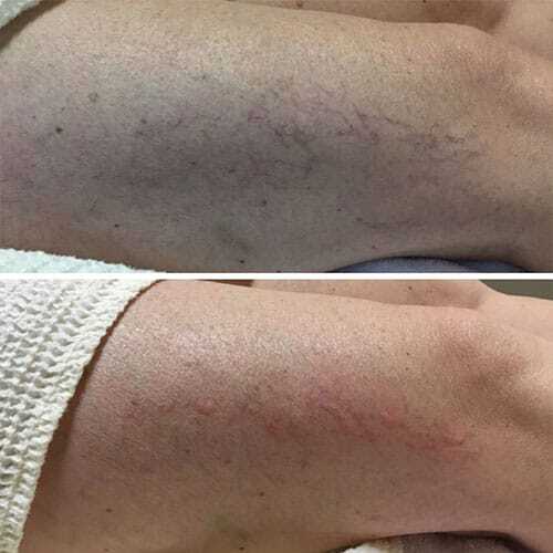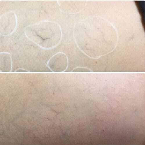 Small, facial veins can be treated quickly without bruising or complications. Spider veins and large blue leg veins can also be treated with excellent results. Knotty varicose veins that rise off the surface of the skin can not be treated with our laser vein removal in Denver. Also – vessels that are so small that they are difficult to see with the naked eye may not be as easily treated.