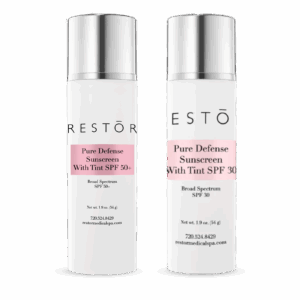 The RESTOR Pure Defense Sunscreen shields against both UVA (aging) and UVB (burning) rays. Available in untinted and tinted formulas, it not only protects but also smooths the complexion and helps prevent fine lines, wrinkles, and discoloration.